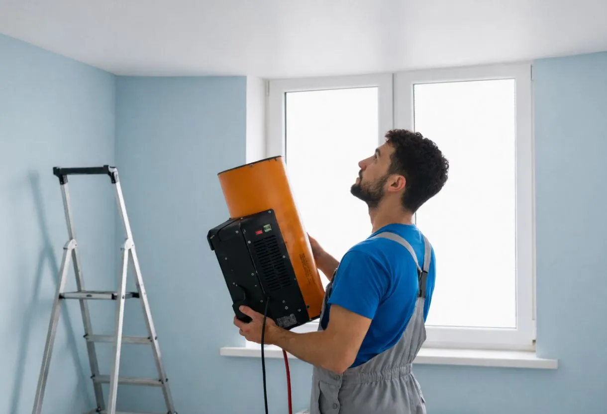 При установке натяжного потолка из плёнки ПВХ требуется нагрев помещения. Для этих целей используются тепловые пушки, нагревающие помещение до 60-70°С в верхней части помещения. При данной температуре Ваши вещи, предметы интерьера и отделочные материалы находятся в безопасности и не подвержены изменениям. Комнатные растения рекомендуется вынести из помещения либо надёжно укрыть теплоизолирующим материалом. Температура в основной части помещения в момент нагрева не превышает 40°С.